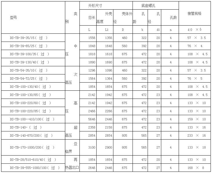 上述排汽消音器其消聲效果能滿足《工業企業噪聲衛生標準》的要求,已在國內獲得了廣泛的應用。四、蒸汽消聲器產品系列及外形尺寸: